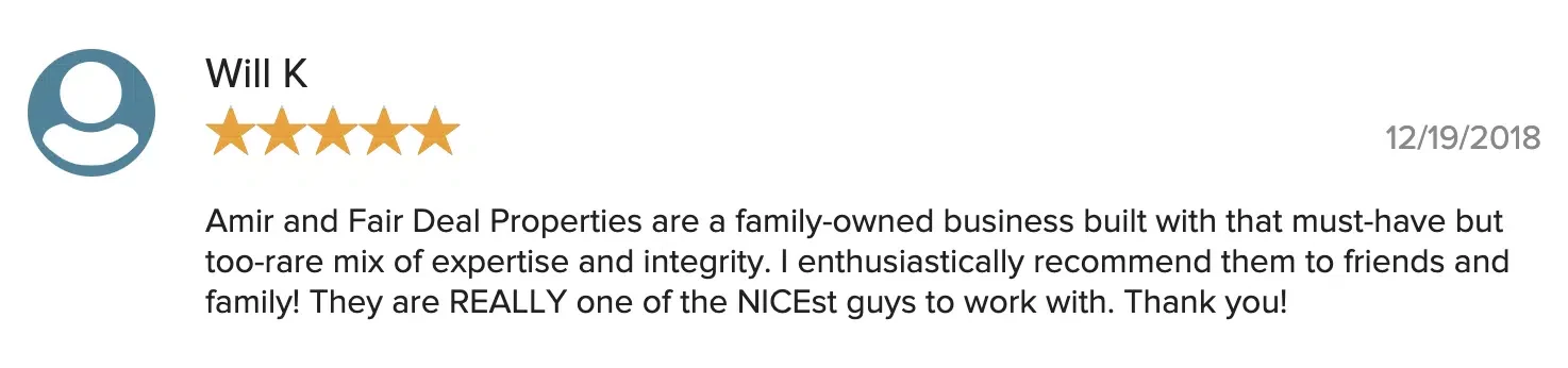 “Thank you Fair Deal Home Buyers for your generosity and sharing your knowledge Amir. He is very knowledgeable, professional, and has a sincere desire to help others in their buying journey.”