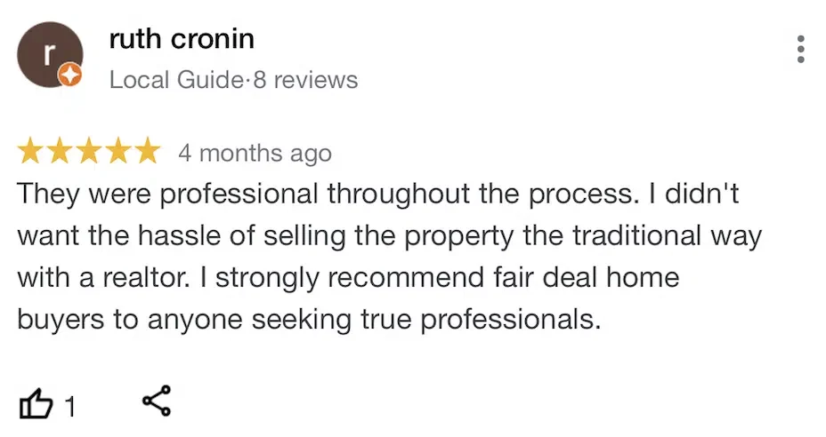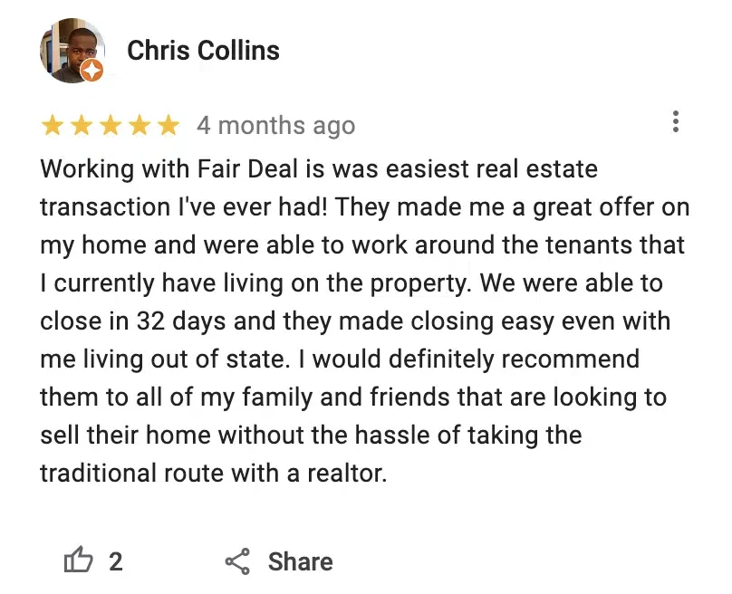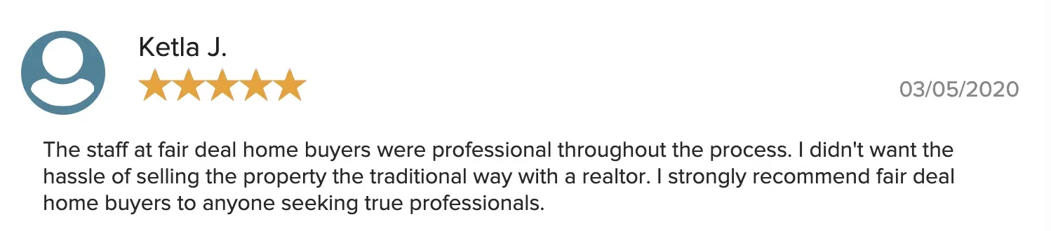 “Fair Deal Home Buyers is an outstanding company. The process with them was seamless with no surprises at all. They closed in a timely fashion and I received my asked for my property.”